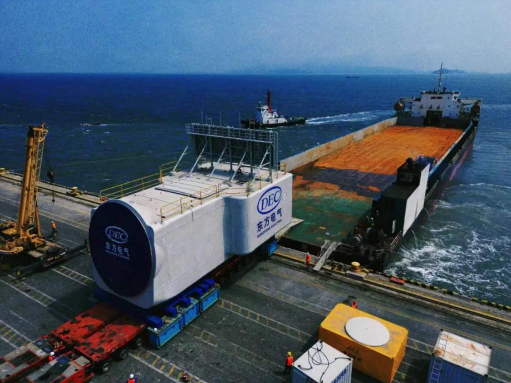 8月4日,由东方电气集团所属东方风电研制的全球单机容量最大26兆瓦海上风电机组核心部件——153米全球最长叶片和超500吨全球最重机舱,安全抵达山东东营广利港。